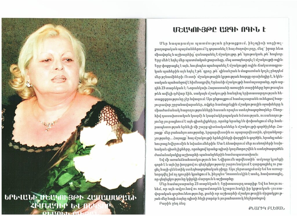 - Ապահովել բարձրորակ մասնագիտական կրթություն մշակույթի տարբեր ոլորտներում,